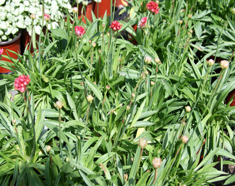 Armeria is rosette in nature with stems bolting out carrying sphere like flowers. Makes an ideal plant grown amongst rocks.